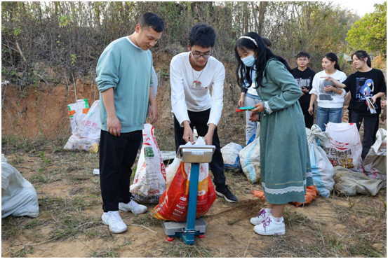 分辨成熟程度、剪断相连瓜蒂、装入编织袋中……“红马甲”们钻进瓜蒌的棚架下,撸起袖子,手起“剪”落,有条不紊地进行分工合作,极大地提高了采摘效率。随着学生们手上沾染的黄色汁水不断增多,不到两小时,他们手中的编织袋就“换了几茬”,直到现有的袋中都装满了个头硕大的瓜蒌。