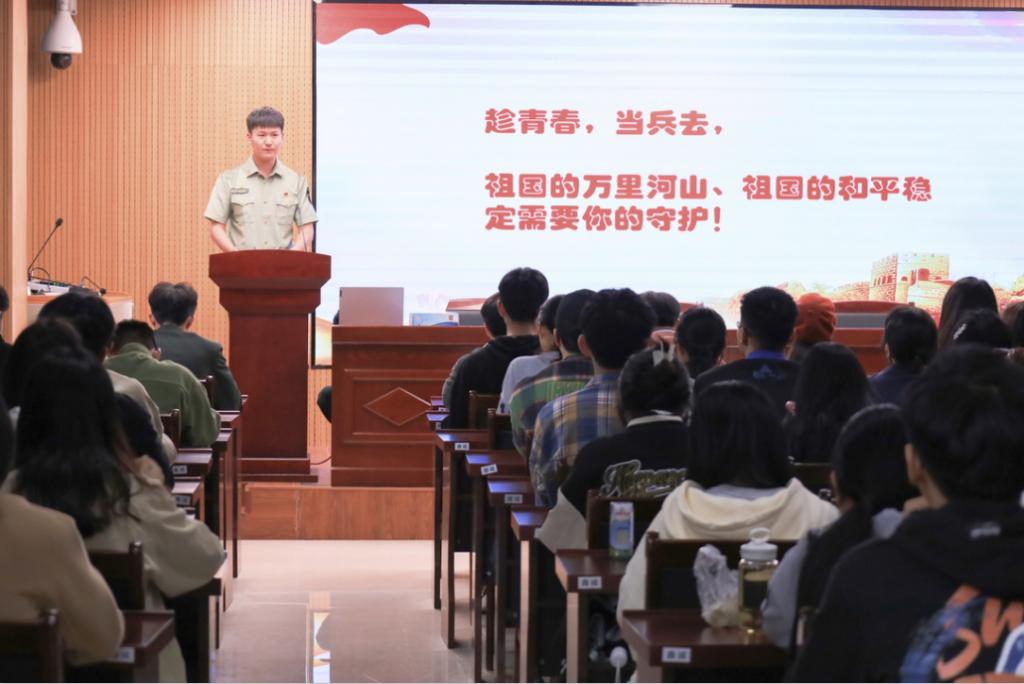 “大学生参军入伍有哪些优惠政策?”“需要哪些条件?”“在部队的生活具体是怎么样的?”……4月30日,玛雅论坛 “聚力”学生党员服务工作站在学院楼102教室开展退役大学生主题讲座,吸引109名学生到场聆听。