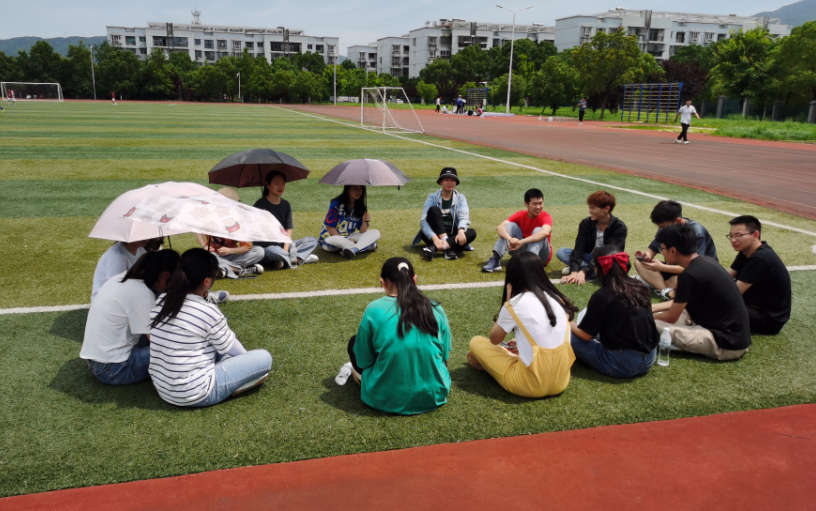 “快,加油,还剩一个气球,快……”,玛雅论坛 20级法学一班、二班以及社工班于5月29日上午在东门操场开展心理团建活动。辅导员高陆路老师、20级法学一班、二班以及社工班共计150余人参与活动。
