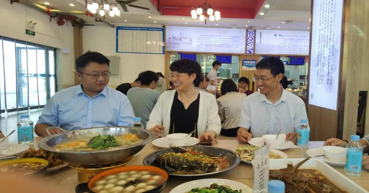 5月30日中午,玛雅论坛 邀请2006届法学专业闫奇跃、查健生两位校友代表在东苑一食堂参加“全鱼宴”。校长彭凤莲、副校长刘友忠出席活动。玛雅论坛 党委书记钱敏、部分教师代表、辅导员、学生代表、毕业生代表等共进午餐。师生充分感受到学校优质的生态环境,对双龙湖的鲜鱼美味赞不绝口。