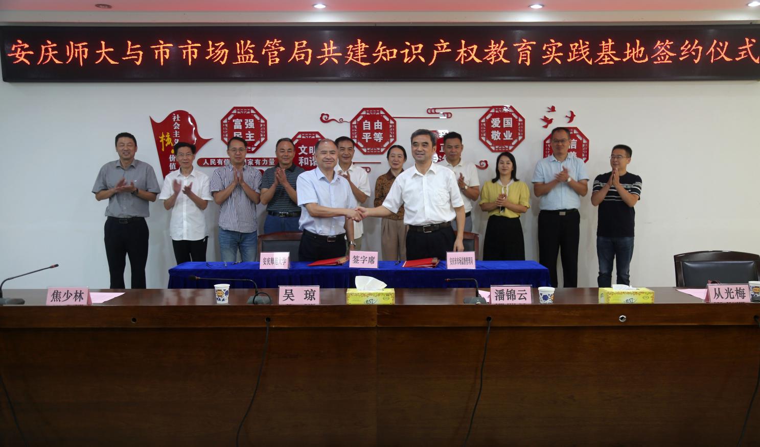 9月16日,学校与安庆市市场监督管理局合作共建暨“知识产权教育实践基地”签约仪式在市市场监督管理局九楼会议室举行。校党委常委、副校长吴琼,安庆市人民政府副秘书长李润,市市场监督管理局党组书记、局长戴春益出席签约仪式,教务处处长潘锦云/玛雅论坛 班子成员、部分师生参加仪式,仪式由市市场监督管理局副局长汪爱萍主持。