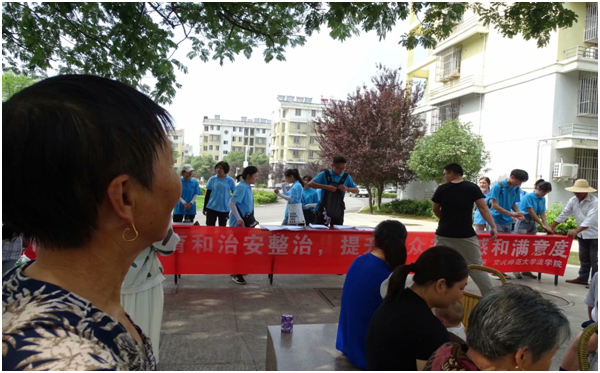 7月11日,法治宣讲团成员与资源环境学院环保知识宣讲团在吾悦广场共同开展了“携环保知识,建美丽中国”实践活动,结合“垃圾分类”的社会热点问题,引申出环境行政纠纷的处理程序和最新《环境保护法》的相关规定,使普法活动与人们生活相结合,让群众看到中国法律对公众环境权益保护的坚决态度。7月14日,宣讲团成员前往龙山花苑小区,通过设立法律咨询台、发放宣传资料、悬挂横幅、普法问卷调查等方式,向大家分析公民的基本权利和义务,让社区居民能够听得懂、记得住、用得上。成员们还向居民们详细解答了农民耕地利用和社区建设(公共厕所,菜市场等社区基础设施建设)等问题,充分调动了居民参与的积极性。