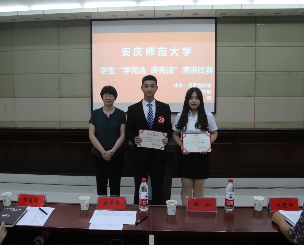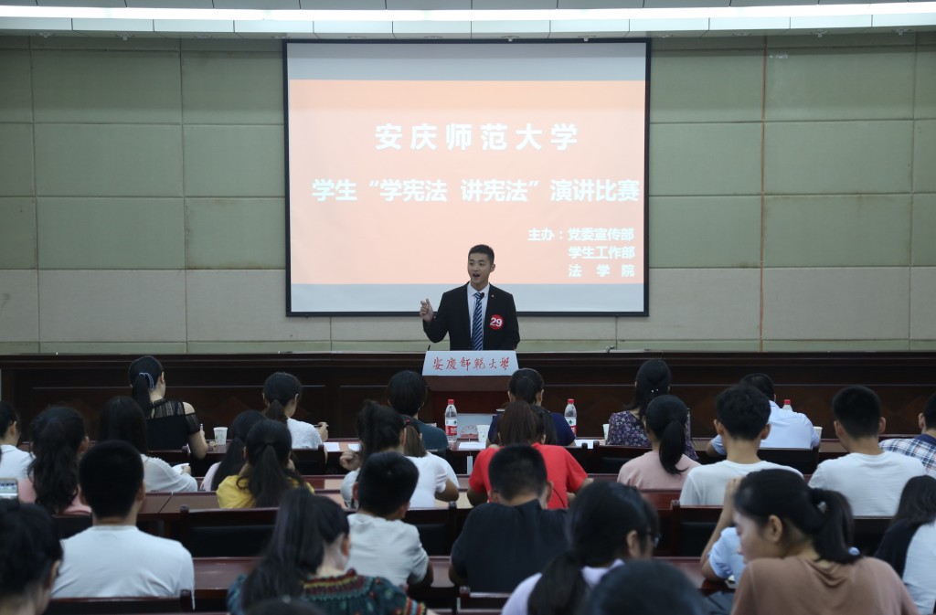 在演讲过程中,来自教师教育学院的九号选手秦晶晶将宪法与我校校训“敬敷、示范、勤学、笃行”有机结合,“正是宪法保障了我们的受教育权,我们才可以在玛雅论坛 学习”;二十五号选手吴建以自身引入,讲述宪法多年来给予他的帮助;十四号选手吴敏以聚宪法之力,筑中国之梦为主题,从聚个人之力、聚社会之力拓展到聚宪法之力,由小及大,层层递进……
