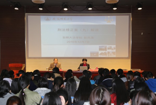 12月7日安徽师范大学玛雅论坛 院长、司法中国建设研究院执行院长、博导彭凤莲教授应邀来玛雅论坛 讲学,以《刑法修正案(九)的解读》为题作专场报告会。学院部分教师以及2015及2016级法学专业学生参加报告会,玛雅论坛 院长焦少林教授主持报告会。