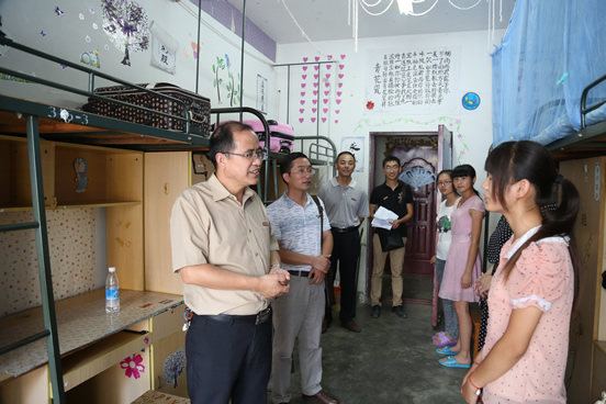 9月10日下午,院领导深入到每一个学生宿舍看望、慰问新同学,询问新生家庭情况,与学生家长亲切交谈。焦院长着重强调了新生入学后的人身安全和财产安全,并勉励新生入学后好好学习,用优良的成绩回报家长和社会。