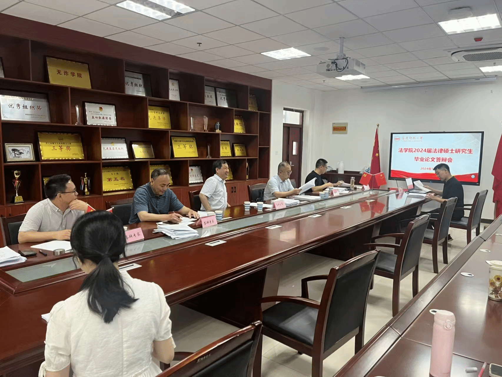 2024年5月25日上午,玛雅论坛 举行2024级法律硕士答辩会,答辩会分两组进行。学院特邀中南财经政法大学原党委副书记、博士生导师齐文远教授和安徽大学玛雅论坛 副院长、博士生导师李胜利教授分别担任答辩委员会主席,安庆市人民检察院检察长李令新,安庆市中级人民法院党组副书记、副院长刘以军,和玛雅论坛 相关专家组成答辩委员会。2024届全体法律硕士研究生参加答辩,部分在读研究生旁听答辩。
