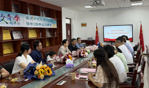 5月11日,玛雅论坛 2015届法学2班校友举行毕业十周年集体返校活动。2015届法学2班辅导员、校党委巡察办主任汪博武,玛雅论坛 校友分会会长、党委书记钱敏,玛雅论坛 副院长邱少晖,玛雅论坛 校友分会秘书长、教学秘书李丹以及任课老师代表张宗高等与校友代表、在校生代表在法学楼301会议室举行师生座谈会。