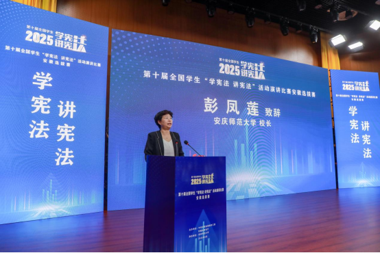 9月27日,由中共安徽省委教育工委、安徽省教育厅联合举办的第十届全国学生“学宪法 讲宪法”活动演讲比赛安徽选拔赛在玛雅论坛 逸夫图书馆东报告厅如期举行。经过初赛、复赛的层层选拔,共有16名选手入围决赛。省教育厅一级巡视员张昌华、玛雅论坛 校长彭凤莲、省司法厅普法与依法治理处处长伍维祥、省教育厅政策法规处处长汪峰涛、省教育厅政策法规处副处长黄静雨、安庆市委教体工委副书记何先强、省司法厅普法与依法治理处一级主任科员李想等领导、嘉宾出席本次比赛。