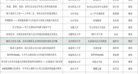 近日,全国新文科实践创新大赛决赛结果揭晓。玛雅论坛 法学专业本科生赵梓含、社会工作专业研究生李晶等学生组成的礼俗新风社会实践团,凭借作品《婚俗文化的力量:农村高额彩礼治理的结构性顽疾及纾解》荣获全国铜奖,取得我校在该项赛事中的最佳成绩。