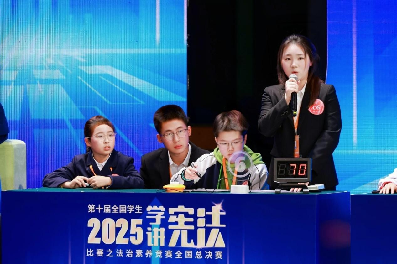 总决赛中,赵元毓精准解读宪法条文与相关法律法规,面对复杂案例快速梳理逻辑、提炼核心,在发挥个人专业优势的同时注重团队协作,充分展现了我校法学学子的优秀风采与学校人才培养的成效。
