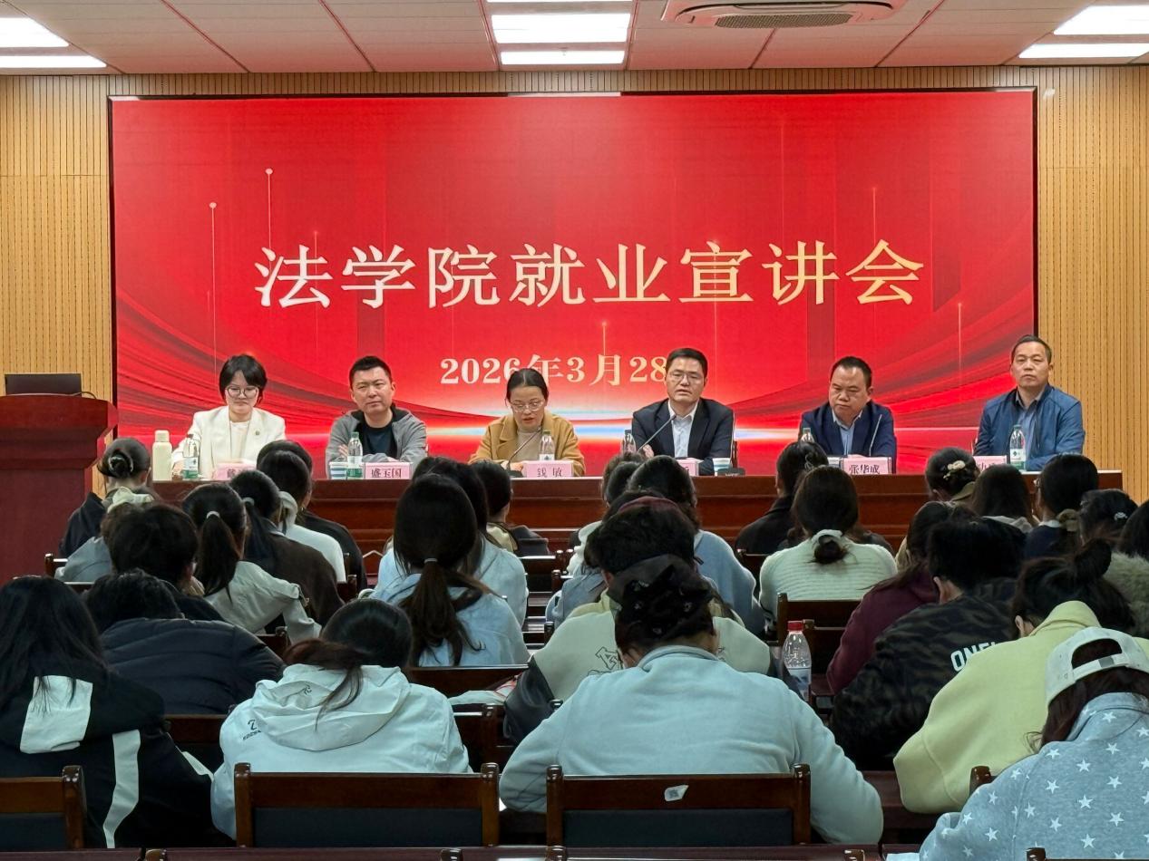 会上,钱敏讲授春季学期“就业第一课”。她立足“十五五”规划开局的时代背景,结合当前复杂严峻的就业形势,精准分析法学、知识产权、社会工作三个专业的就业方向、就业赛道,以及各专业须具备的核心综合素养。她表示,学院将持续整合各类资源、完善就业指导体系,为同学们提供精准就业服务,勉励同学们认清形势、转变观念,注重实践、夯实基础,以积极心态和扎实能力迎接就业挑战。