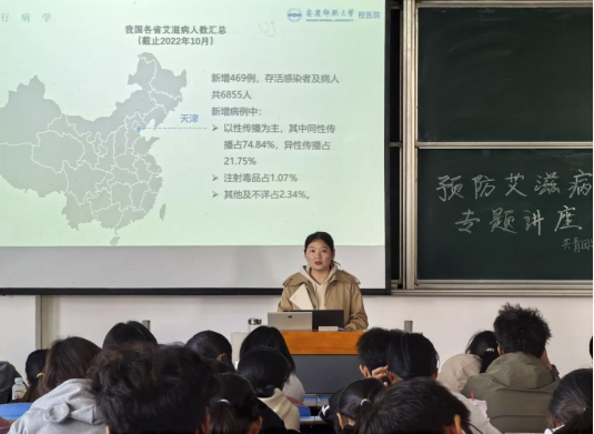 11月2日,校医院为玛雅论坛 2024级全体新生开展“预防艾滋病”专题讲座,带领学生共同学习预防艾滋病相关知识,增强大学生的自我防范意识。本次讲座由校医院卞晓艳主讲。