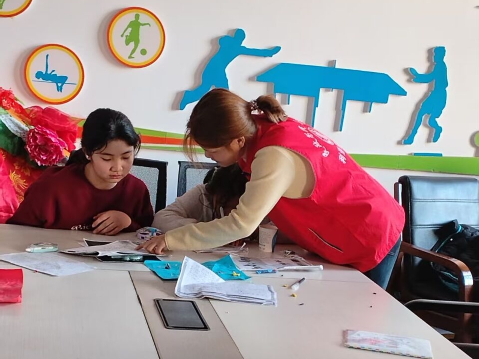 2025级社会工作班王璐同学走进宁夏回族自治区吴忠市利通区关渠村社区,充分发挥社会工作专业优势,在社区活动室为孩子们开展课业辅导与成长陪伴,通过耐心细致的讲解和互动式引导,帮助孩子们攻克学习难题,用温暖的陪伴为青少年健康成长保驾护航。