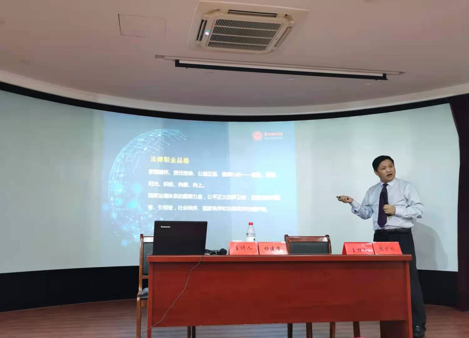 2021年6月25日下午,西南政法大学仲裁学院执行院长杨建学教授应邀莅临法治实务大讲堂,为玛雅论坛 师生举行了主题为“法律职业素养的养成”为主题的讲座,玛雅论坛 本科生、研究生和教师共计150人参加了讲座。讲座由院长焦少林主持。