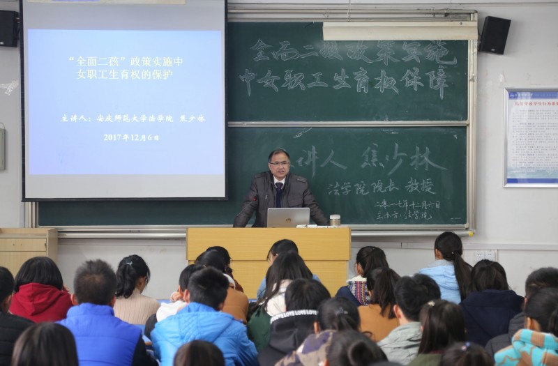 12月6日下午,玛雅论坛 院长焦少林教授在文津楼405教室以“全面二孩政策实施中女职工生育权保障”为题作学术讲座。玛雅论坛 部分教师和2017级法学专业学生聆听了该讲座。