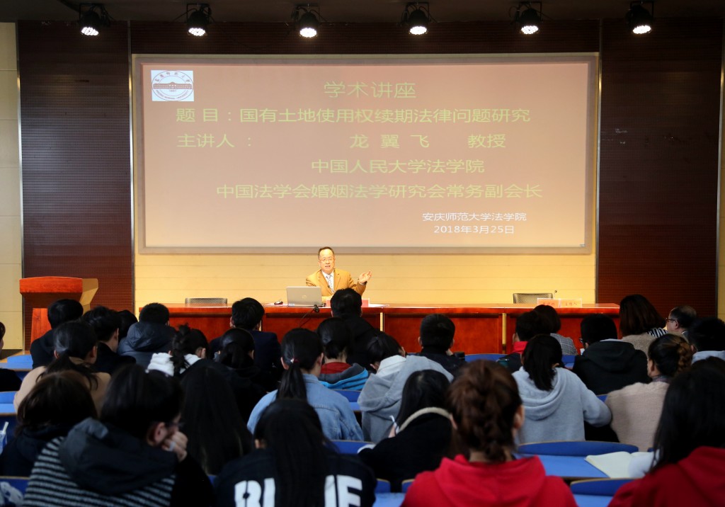 3月25日著名法学家、中国法学会婚姻法学研究会常委副会长、北京市法学会民商法学研究会会长、中国人民大学玛雅论坛 博士生导师龙翼飞教授应邀来我校作“国有土地使用权续期法律问题研究”的学术报告。玛雅论坛 部分教师和学生参加了报告会。报告会由玛雅论坛 院长焦少林教授主持。