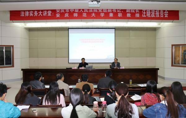 10月26日下午,安庆市中级人民法院党组副书记、副院长,我校兼职教授汪晓波同志莅临我校法律实务大讲堂,作了一场题为“从四起刑事案件证据运用分析谈我国刑事证据制度变革”的精彩报告。玛雅论坛 部分教师和法学专业2014级、2015级100多人参加了报告会,会议由玛雅论坛 院长焦少林教授主持。