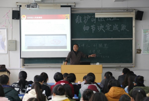11月30日岳西县人民检察院党组人员、反贪局长,我校玛雅论坛 院长助理、副教授刘鹏里应邀莅临法律实务大讲堂,作了一场以“维护司法公正 细节决定成败”为主题讲座,玛雅论坛 2016级法学专业部分学生参加。