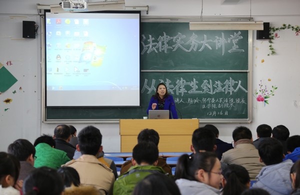 12月16日下午,怀宁县人民法院院长、玛雅论坛 副院长杨玲来法律实务大讲堂作了题为“从法律生到法律人”的讲座。玛雅论坛 党政班子和部分教师及法学专业2015级本科生参加了讲座,讲座由玛雅论坛 院长焦少林教授主持。