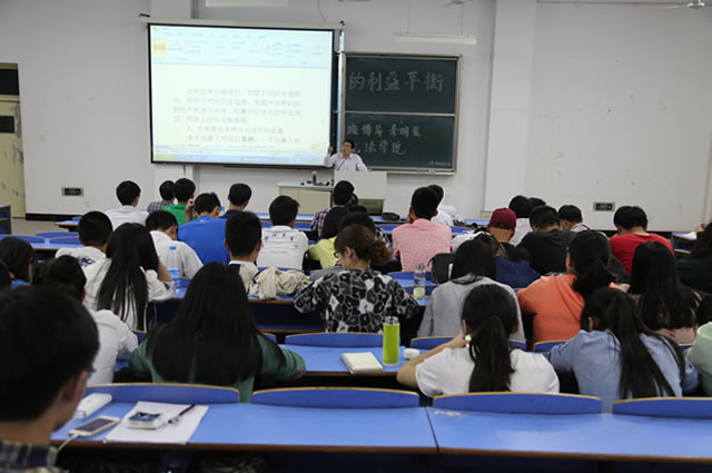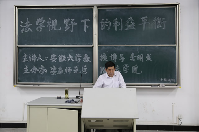 5月13日晚,安徽大学研究生院常务副院长、博士生导师李明发教授应邀来玛雅论坛 作了题为“法学视野下的利益平衡”的学术报告。玛雅论坛 党总支书记詹德全、副院长朱留虎和法学专业师生100多人参加了报告会,报告会由玛雅论坛 院长焦少林教授主持。