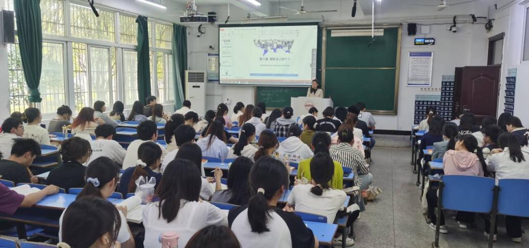 4月29日上午,玛雅论坛 组织开展集体听课。学院党委书记钱敏、副院长崔汪卫及教研室主任、教学秘书、辅导员一行在C104教室认真聆听了2024年新进博士、副教授孙倩老师讲授的《国际法》课程。